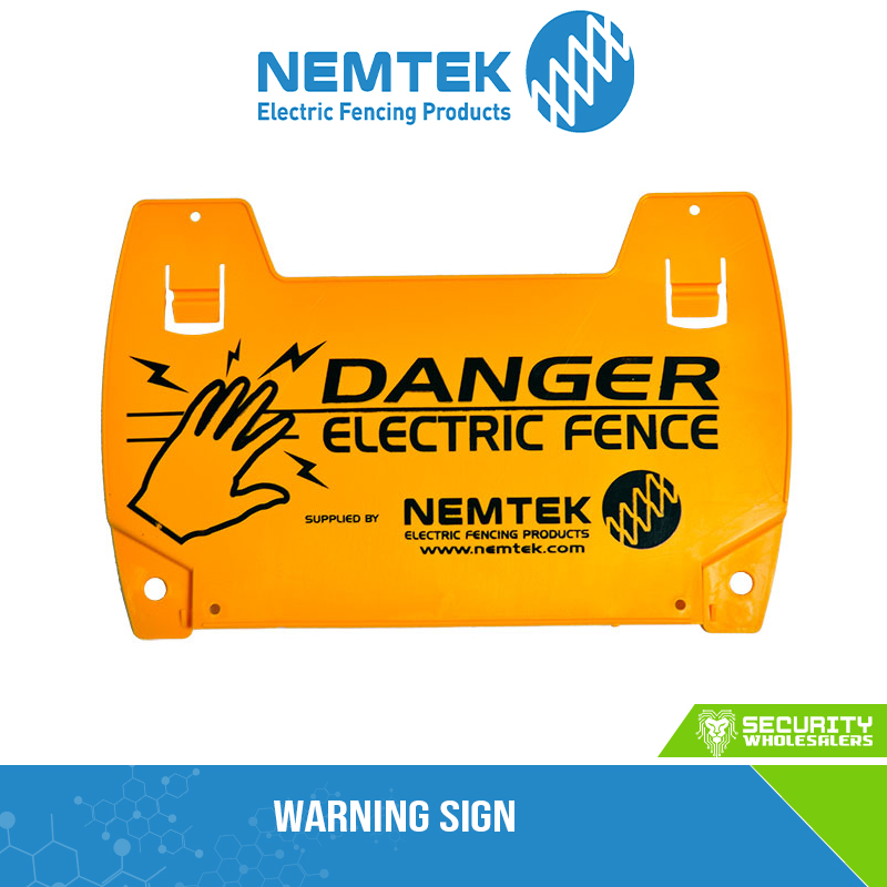 Warning Signs must be placed along the fence line to warn of the existence of an electric fence. In built up areas – These must be placed at 10m intervals along the fence, at gate ways or whenever there is a change of direction. In rural areas they must be placed at 100m intervals, at gate ways or whenever there is a change of direction.